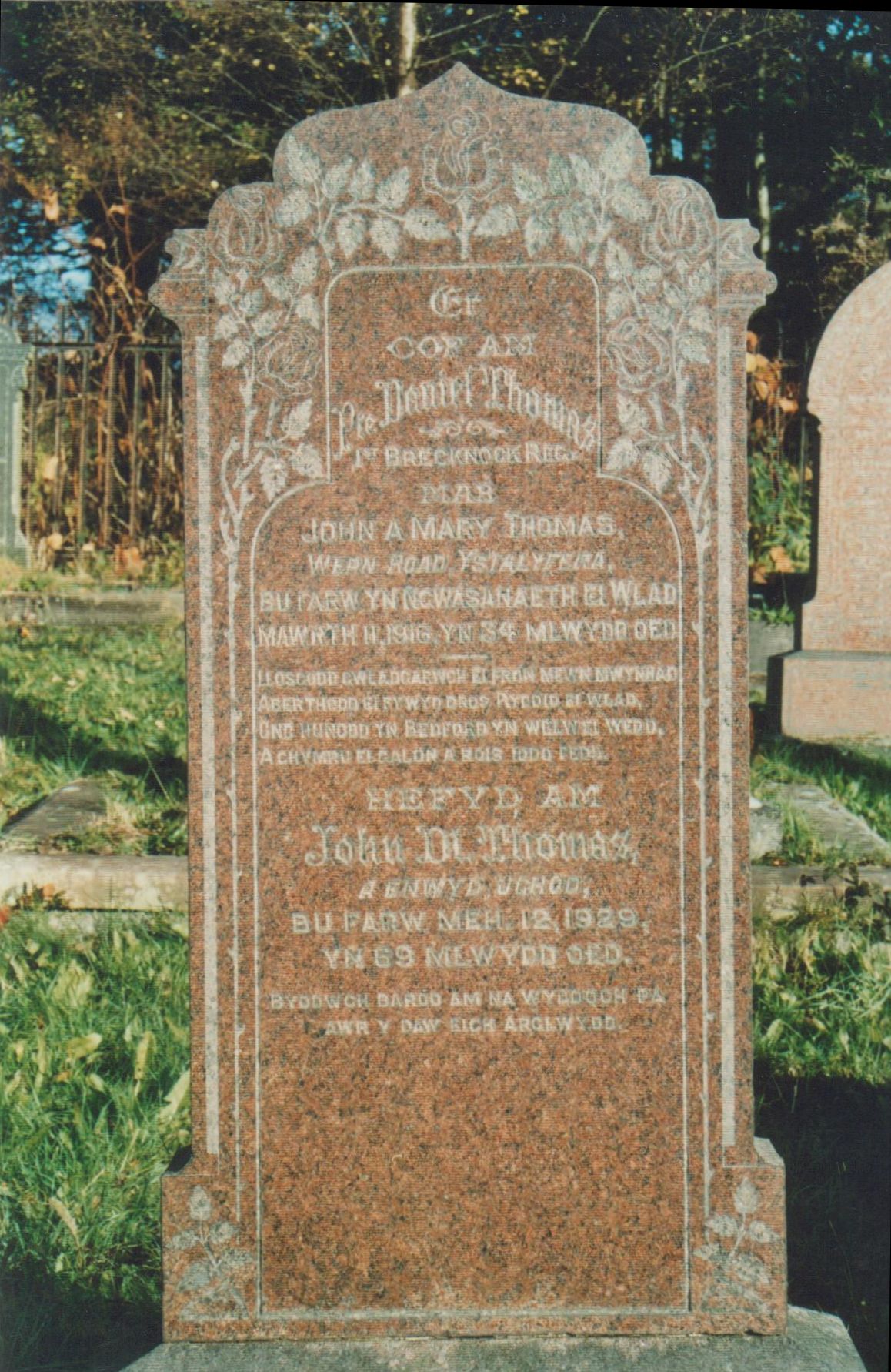 Ystalyfera FallenWar Graves & Remembrance GravesDaniel ThomasThis is the memorial page for Daniel Thomas, native of Ystalyfera, killed during the First World War. The information on Daniel Thomas comes principally from the Commonwealth War Graves Commission, from the Labour Voice newspaper, and the Parish Burial Register (courtesy of the Swansea Archives).