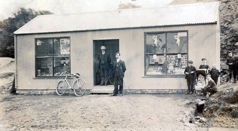 Grateful Thanks to David Morgan for sending YEARGROUP photographs of his Grandfathers Shop. The photograph shows his grandfathers shop = Stationer/Tobacconist/Cycle Agent and Repair Shop in its heyday and later when the roof had clearly been removed. His Grandfather Whitefield James Morgan (Born Carmarthen 10/05/1878) was the Newsagent and in the above article, at the funeral of Handel JONES, he acted as the Marshall. Ystalyfera - South Wales