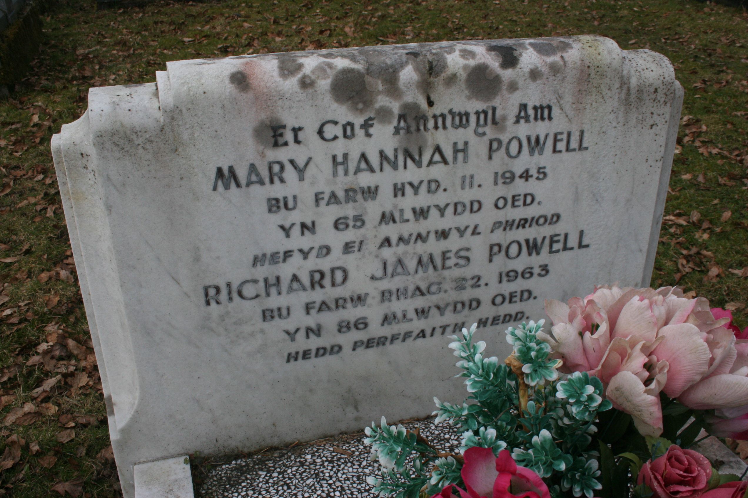 Mourners were: Richard Powell husband; Thomas and Danny Powell sons; Derek Powell and Geoffrey Jenkins grandsons; William Jenkins and Geoffrey Evans sons in law; John Jones, Rev Daniel Jones, D R Jones, Tom Jones brothers; William Powell, David John Powell, Ivor Powell, William Morgan Jones, Tom Davies brothers in law; Albert John Jones, Daniel Lewis, Henry Harries, William Davies cousins; Daniel Jones, Cledwyn Lewis, W Gwyn Jones, Aubrey Powell nephews.