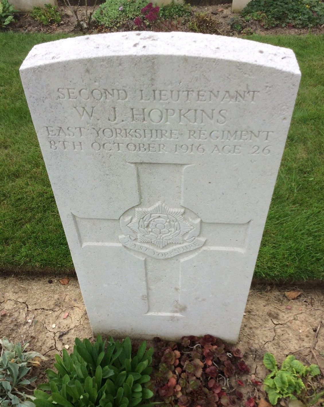 I was not at all surprised to hear he had joined the Army. He was just the fine noble sort to do so. I met him twice in khaki; the last time (alas that it should have been so in the other sense) he was on leave from Yorkshire and I do not think a finer looking officer could have been seen anywhere than he. Tall, upright, smart of movement and graceful of gesture, he smiled sunnily showing a perfect set of white teeth. When I heard he had fallen this was the picture that I saw. How grim the contrast. Poor Hopkin! And yet why should we say so? Is life to be measured solely by its length? Hopkins lived to be 78 is quite possible he might not have achieved the glory has now 27 attained. No, we must remember what a noble lady said when her brilliant and promising son was killed on the Somme a few weeks ago: "I do not look upon his life", she said "but as cut-off but ass fulfilled". Does not that fit William Jones Hopkin's case? He has fulfilled the highest ideal he had handed down a finer inspiration to the boys of the Ystalyfera County School than if he had secured the highest honours a University could give. His name is the fragrance and the glory to generations of boys who have not yet taken their place in the school. A memorial should be set up in the Hall of the school and his glory should be made immortal. We bow our heads in reverence as we recall his sacrifice.